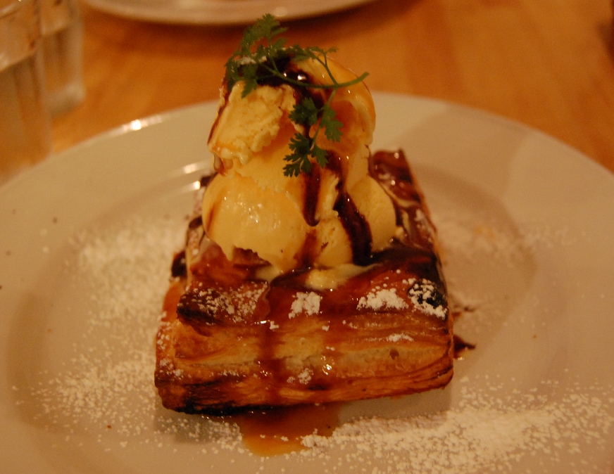熱々のアップルパイの上に、冷たいアイスクリームがのってる。