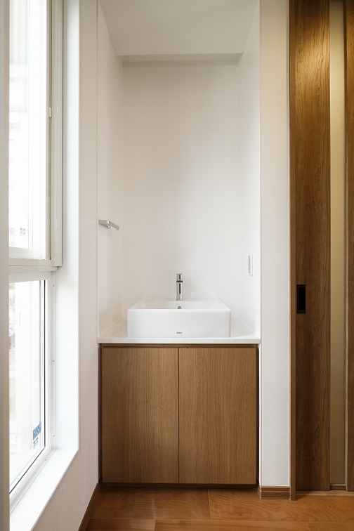 玄関あがって突き当りに手洗い場を設けてもらいました。