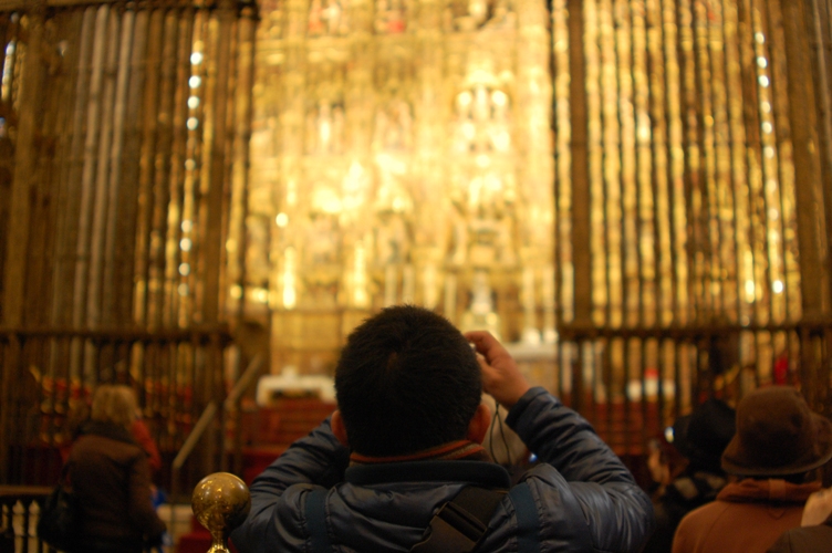 上の写真は、主祭壇で写真を撮るツアー客の1人。関西人です。