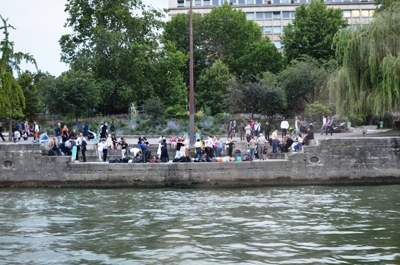 クルーズで眺めていると、セーヌ川で多くの市民が