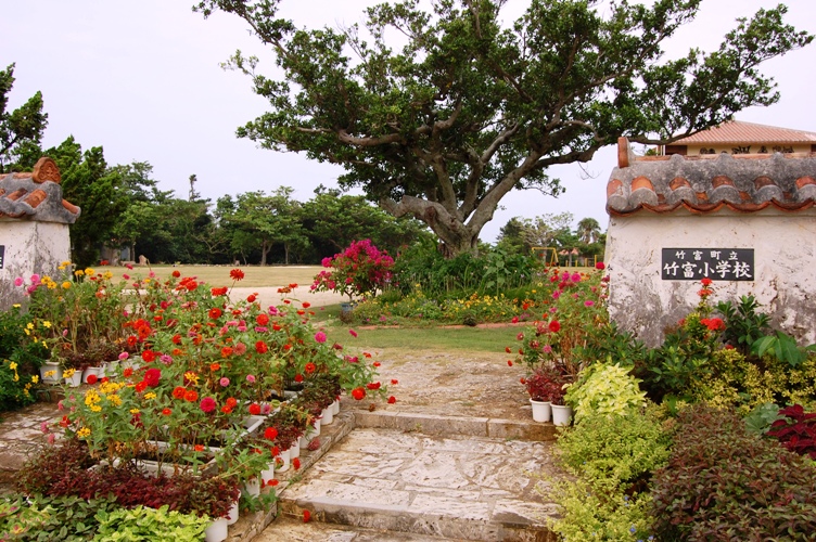これは小学校。自然豊かな島らしく、小学校もお花だらけ。