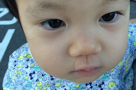口ー鼻にかけて丸い型が付いています。なんだか分かりますか?