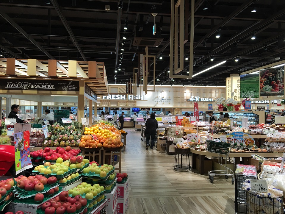 スーパーはL字型になっておりまして、食料品エリアと日用品エリアと大きく