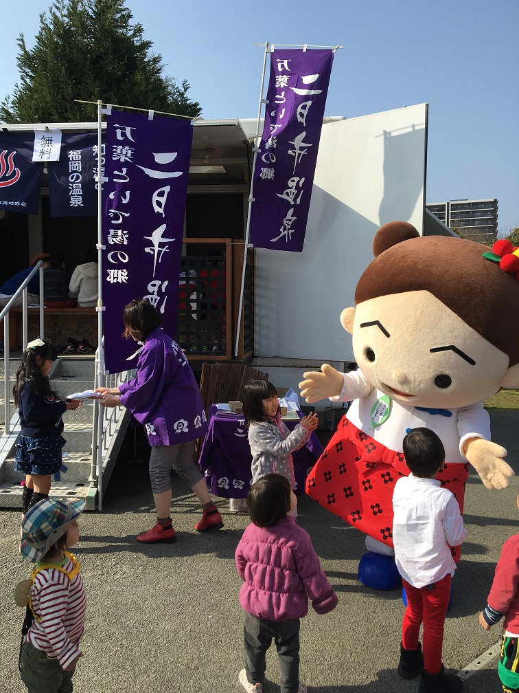 謎のゆるキャラと温泉丸ごと持ってきていました。