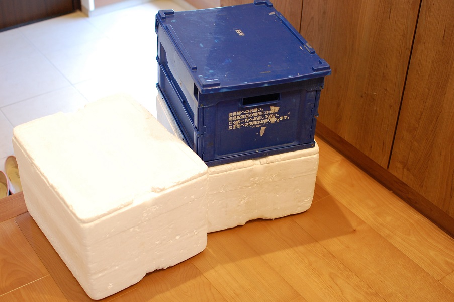頼んだらこんな感じで発泡スチロール箱とかに詰められてやってきます。