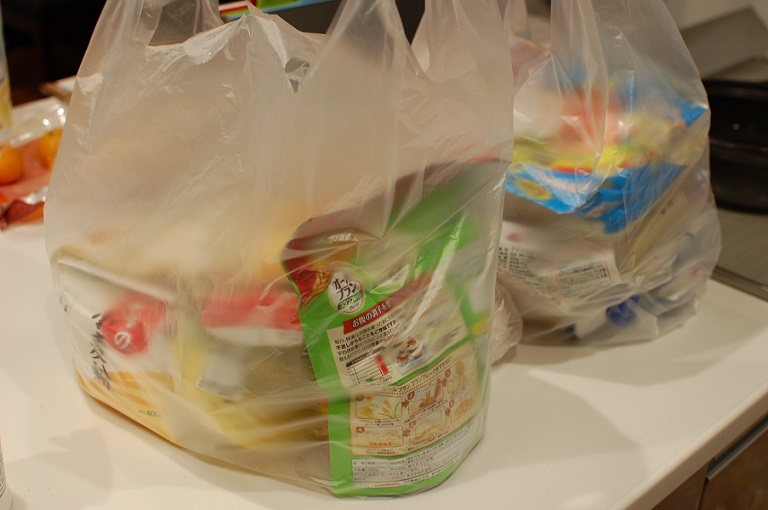 こんな感じで、ス-パーの袋に入れられてやってきます。