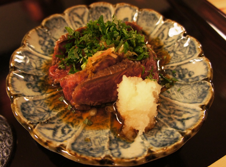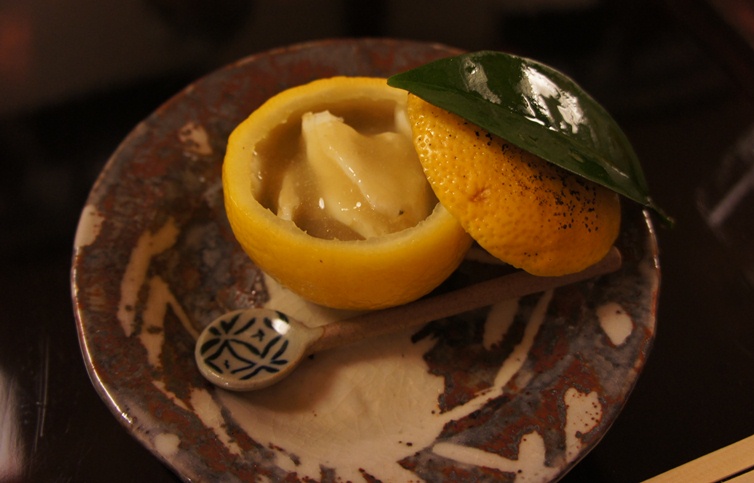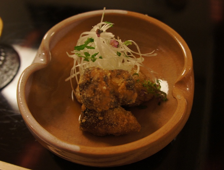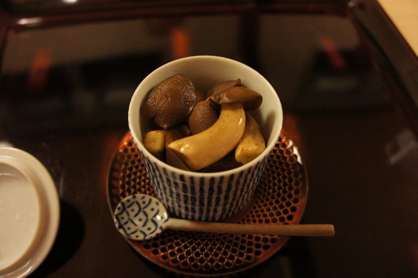 御料理 まつ山 Category:日常 Date:2011年11月27日 昨晩は、妻の両親らとの食事会今年も無事に終わり「そう」ですということで…。 小倉に「佐藤」という京料理を出してくれる有名な高級料理店があるんやけど、 そこで修行された大将が今年の8月22日オープンしたばかりのお店。 大将と言ってもまだ、若くてまだ30代だと思うけど…今度聞いてみようかなぁ。 奥さんと二人で切り盛りしているとのことだったけど、 今回訪れた時には店内満席だったのでヘルプ?だったのかお手伝いに年配の女性も加わってた。 お母さん、だったのかな(笑) 黒崎駅で降りて徒歩5分の距離、寂れた夜の街並みの中、 ボーっとこの店の明かりが照らされてる 佐藤と同じ、カウンターを基本とした割烹料理だけどこの店にはテーブルも2つあった。 他の客もいたのでパシャパシャ撮れず。 予約時に何か食べれないものは?と聞かれたので「蕎麦」と言っていたら どうも最初「蕎麦」出す予定だったそうで(笑)、僕の分は「しめじの茶碗蒸し」に変更となった。 南阿蘇で今朝取ってきた「そば」です、とか言ってた。 ちなみに、ここは昼は2000円~食事が楽しめ、 夜は4000円、6000円、8000円、10000円とバリエーションに富んだ値段設定となっている。 『原価半分』と公言しているため、他の店で食べようと思ったらきっと値段はもっと高くなるやろう。 そういう意味でCPは相当高い(ちなみに「佐藤」は本当に高い)。 今回は8000円コースでお願いした。 柚子の中にワタリガニが入っていて、柚子の香りも楽しめて美味しかった。 他の牛のたたきと鯛だったかな?刺身。 塩昆布とびっくりするぐらい細かく刻んだネギ醤油で召し上がる ちなみに、日本酒を頼もうとすると「おすすめがありますよ」と言われたのでそのまま頼んだんやけど、 食べログの書き込みを見ると、『日本酒はこちらの好みを聞いて亭主が決める』とあったので、 自分で見て選ぶことはやってないのかもしれない。 『あつかんで』ぐらい言わないと、冷酒で登場するので注意今回は長野県の日本酒が出てきた。 おちょこは、沢山用意されていてそこから自分の好きなものをチョイスする仕組みになっている。 これはエリンギか? というくらい大きな松茸を料理前にお披露目があり、出来あがったのが上の写真の料理。 松茸と蕎麦の実(これまた僕のものには代替の実)+お餅。 「松茸が有難られていなかった時代の料理です」 と紹介され、マイウーでした 2番目は素朴だけどかなり美味しいかぼちゃと、全然臭みのないナマコと貝、数の子と刺身。 これも相当美味しかった 3番目は鯛の味噌汁。 ここらへんになると、お義父さんは結構酔ってらっしゃっていい気分になっているご様子。 家に帰れるかなーっとちょっと心配に… 京料理らしく、渋めのお漬物。どんな漬け方したらこうなるのか。 そして、 「はい、親子丼ですー」 と言われてできたのが、2番目の写真。 卵と鶏の親子丼を想像してたら、鮭とイクラだった(笑) めちゃ美味しい妻とお義母さんはご飯のおかわりを要求(男どもは?)。 おひつに余ったご飯はちりめんじゃこと一緒に握り飯にしてお土産としてくれた。 嬉しい心遣い 最後はデザート。干し柿とその上にブランデーを染み込ませた何か。 そして、隅に安納芋を降りませたチョコ。 ごちそーさまでした。 満席だったけど、特に料理のスピードも問題なく、噂通りCP高い、美味しい割烹料理店でした。 地元黒崎に帰ってきて、活性化の一助となればという想いもある大将。 応援しています、頑張って下さい。 お義父さんお義母さんも美味しかったみたいで良かった良かった [1回]PR http://itudemoaerunya.blog.shinobi.jp/%E6%97%A5%E5%B8%B8/%E5%BE%A1%E6%96%99%E7%90%86%E3%80%80%E3%81%BE%E3%81%A4%E5%B1%B1御料理 まつ山