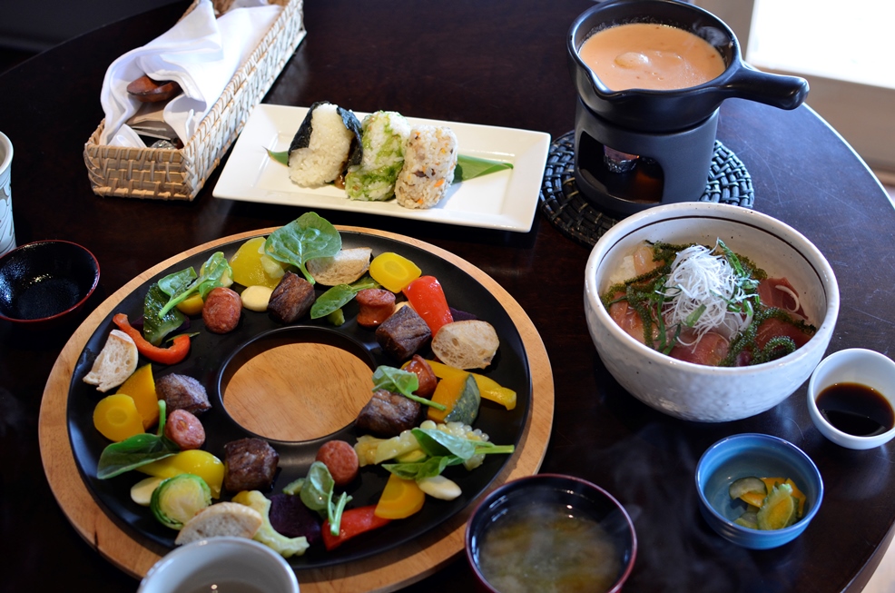 チーフォンデュと海鮮丼、おにぎりです。