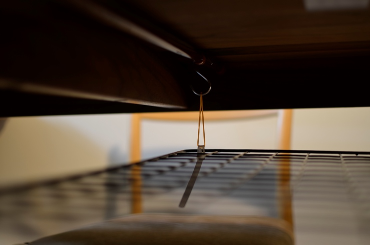食卓の裏につっかえ棒を設置し、スチールネットを吊るすだけ。