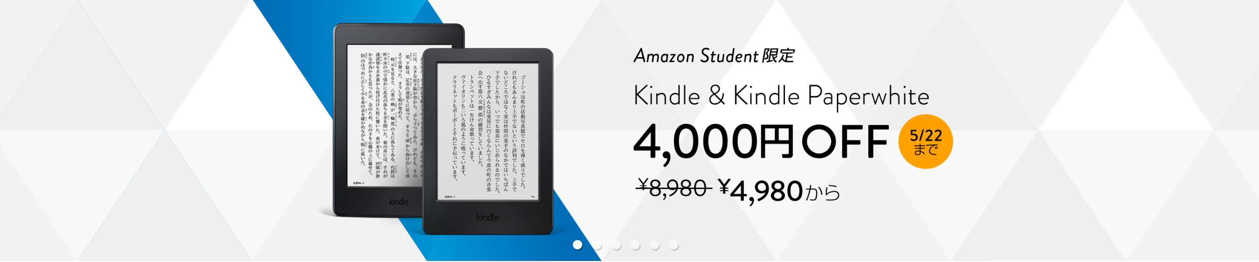 kindleを安く購入できるキャンペーンがstudent対象に5/22まで開催されています。