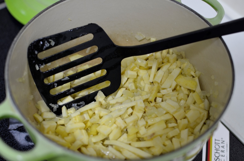 分かりづらいですが、芋の下にみじん切りしたタマネギもあります。