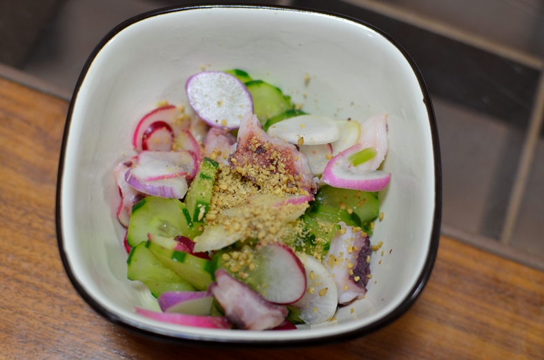 実際は、茹でたタコときゅうりとゴマも一緒にあえてます。