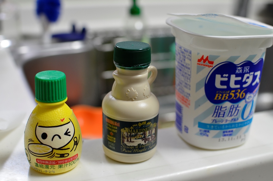 左からレモン汁、メープルシロップ、ヨーグルト。