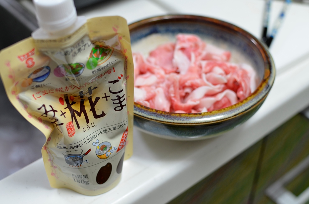 胡麻味噌麹とかいうのをスーパーで見つけたので、これを隠し味に。